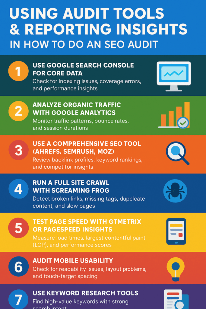 Using Audit Tools & Reporting Insights in How to Do an SEO Audit